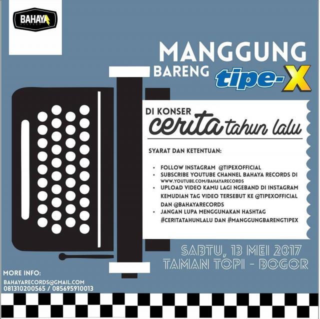 Pernah ngebayangin rasanya manggung bareng @tipexofficial di konser specialnya? . Kenapa ngga? Gampang banget kok audisinya, posting video band kamu (boleh sedang latihan/video clip) di Instagram. Tag video tersebut ke @tipexofficial dan @bahayarecords. Sertakan juga hashtag #manggungbarengtipex dan #ceritatahunlal