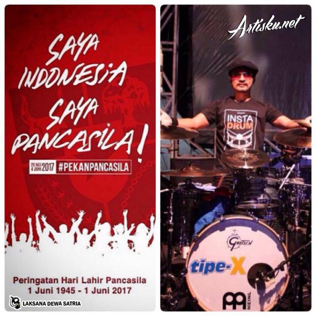 Seperti public figure lainnya, Arie sang drummer TIPE-X ikut memposting foto di akun instagramnya dengan hashtag #pekanpancasila. Fotonya sedang berdiri di belakang drum kesayangannya, disandingkan dengan tulisan SAYA INDONESIA SAYA PANCASILA. Inilah salah satu bentuk cinta Ari terhadap bangsa dan Negara.